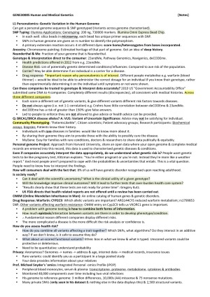 Subject notes for UniMelb GENE30005