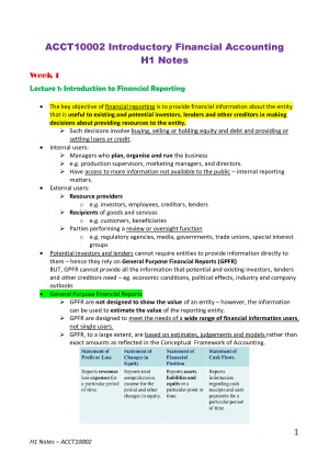 - ULTIMATE Comprehensive ACCT10001 H1 STUDENT's Notes + Revision Summaries (Accounting Reports and Analysis 2017)