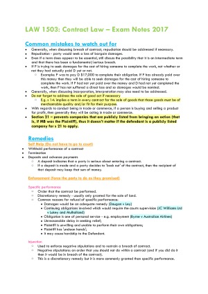 These notes are extremely comprehensive and allowed me to achieve a distinction overall for contract law. They are clear, well formatted and easy to follow and will provide you with a more in depth understanding of the topic.