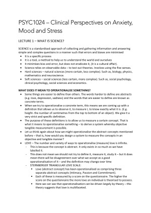 PSYC1024: Anxiety, Mood and Stress High Distinction Notes