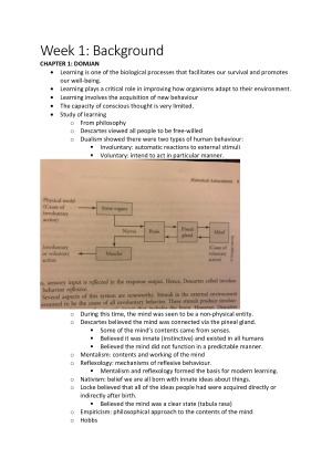 Over 50 pages of notes. Notes from weeks 1-4 incorporate the textbook, but the rest of the notes are from lectures and tutes. Chapters covered include: classical conditioning, Rescorla Wagner model, Pearce Hall Model, Mackintosh Model, implicit learning, phobias and the model of schizophrenia. Textbook used: Principles of Learning and Behaviour (2015), Domjan.