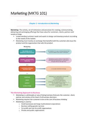 - Selling my detailed, high quality, comprehensive notes for MKTG101 in which I achieved a distinction. - Notes include all content from lectures, readings and the textbook from weeks 1-13. - Includes a variety of diagrams, mind maps and tables which help you to understand the content better! - Headings are colour coded to break down information and topics. - Please note the sample notes includes information from various parts of the document - I spent many hours creating these notes so all the hard work has been done for you! - Also selling notes for ECH130, BBA102, ACCG100 and ECON111!