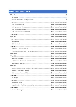 An incredibly thorough, detailed and well organised set of notes for Constitutional Law. It covers the entire semester, including very easy to understand and detailed case summaries, lecture summaries, and tutorial summaries. I used these notes to get a HD in Constitutional Law - and i'm sure you will do great as well with these notes!