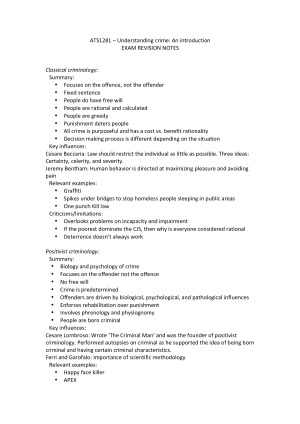 Brief notes with summary of each crime theory, key influences, examples, and advantages and disadvantages (dot points)