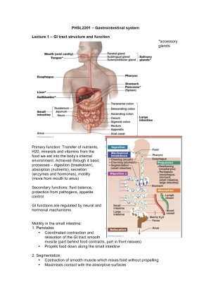 Detailed notes of the Gastrointestinal system topic. Made from lecture notes/recordings, textbooks and online resources