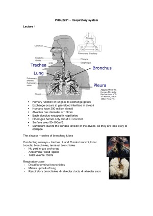 Detailed notes on the Respiratory system and Kidney and Body Fluids. Includes all points in course outline plus pictures and diagrams. Made from lecture recordings/notes, textbooks and online resources.