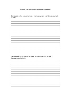 These notes contain a number of questions I formulated myself, directly from the subject notes for the Foundations of Finance final exam. These questions are designed to give you practise on defining and explaining key terms. These questions are similar to those that you will encounter in the final exam and give you practise at formulating responses and memorising definitions.