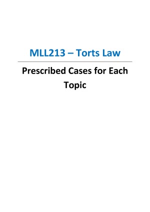 A comprehensive summary of the prescribed cases for all topics in the MLL213 course. The resources used to compile these notes included: - Textbook - Study Guide - Lecture Notes - Tutorial Notes They are ready to print and perfect for the MLL213 assignment and exam.