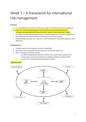 Covers all topics and lectures - however, does not many readings. Includes 'Steps in Risk Analysis' template which is essentially how to tackle all exams in the unit.