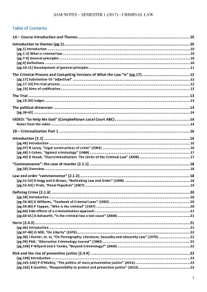 I used these notes to receive a Distinction Mark in Criminal Law. These notes have been comprehensively put together from the reading guide, sorted into each week. They contain summaries of ALL cases and legislation in the textbook (drug offences, public order offences, criminal association and police powers) and policy summaries including criminalisation, discretion and process as punishment, which are ALL included in the reading guide. My notes are 203 pages (so very detailed!) and are all COLOUR CODED and NEATLY ORGANISED into different subsections, tables and headings. They also have MINI-PRACTISE QUESTIONS, DIAGRAMS and PICTURES integrated into the notes, with a scaffold for answering exam-like questions, to help achieve the best possible mark. I hope these notes will be as useful to you as they were for me in Criminal Law 1. Having notes COLOUR CODED and NEATLY ORGANISED was a real asset in a time pressured exam.