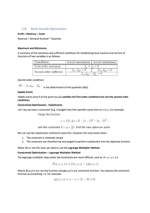 These notes cover everything in the ECON1202 course. I got a 90HD using these notes. The notes focus on providing concise, easy to follow summaries of each of the key topics while ensuring that each are explained in depth. It provides step-by-step walk throughs of all the tricky questions. All equations and calculations needed for the Final Exam are included in the document. Topic list: 1. Financial Mathematics 2. Matricies 3. Probability 4. Linear Programming 5. Calculus
