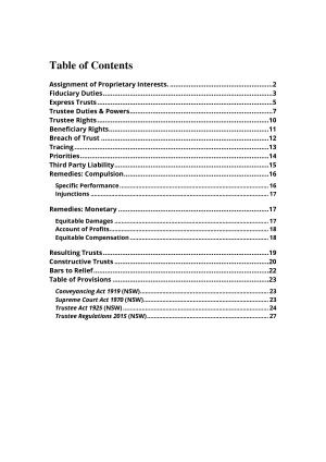 Summary notes from Equity and Trusts for exam problem question. Includes a Case list at the end with a quick summary of each case covered in the material plus the extra reading given by the lecturer. There is over 100 cases listed in that section. Page 1 to 22 are the exam summaries, there are 3-4 pages of provisions from the materials and the remainder is the case list. it has been designed to print back to back and take into the exam as two separate books.