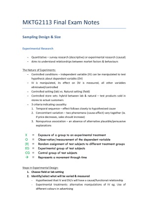 Extremely detailed notes that helped me study for this challenging subject and achieve a Distinction grade overall. Contains headings as well as diagrams & tables to illustrate theories. Topics Covered: - Sampling Design & Size - Collecting & Understanding Data - Testing for Differences - Tests of Association - Multivariate Analysis