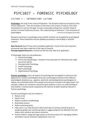 High Distinction: PSYC1027 Forensic Psychology Notes