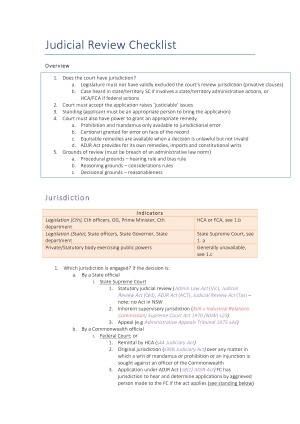 Administrative Law Exam Scaffolds (including Judicial Review Checklist)