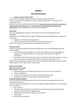 Uses a wide range of readings summary and external notes, in addition to lecture notes. The topics covered in these notes include: - Introduction to Ethics - Theories and Foundations - Internal Business Ethics - Corporate Social Responsibility, Governance and International Business Ethics - Integrity of Capital Markets - Duties to Clients and Duties to Employers - Investment Advice and Conflicts of Interest