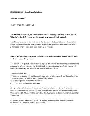 Topics: -Techniques for studying viruses -Viral transcription/replication: dsRNA viruses negative strand RNA viruses positive strand RNA viruses DNA viruses Viruses that use reverse transcriptase -Assembly and exit My friend and I put this together in the lead up to MST1. You can use this to test yourself on the most essential concepts relevant to MST1. Simply cover up the answers and try to write a succinct answer to the questions. Or you can just read it! Note: this mock paper is entirely in SAQ form, and is much longer than the real thing. But it pretty much covers all the important details