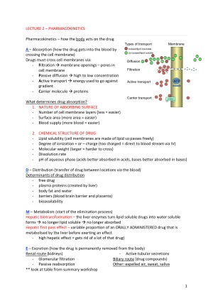 - Thorough and easy to read notes - Diagrams and images included to assist in understanding Covers the topics: - Pharmacokinetics - Pharmacodynamics - Inflammation - Oedema - Healing - Non-specific defences - Obesity - Hypertension - Atherosclerosis - Thrombosis - Anticoagulents - Coronary Artery Disease - Stroke - Cardiovascular drugs - Diabetes + consequences + pharmacological management - Asthma + clinical manifestations + pharmacological management - Fractures - Arthritis + Osteoporosis - Demetia - Depression + Anti-depressants - Addiction - Cancer + Neoplasia +clinical manifestations