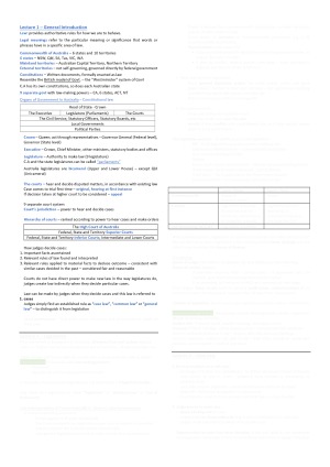The notes can be used as study material to ensure coverage of assessable materials. It cover a summary of weekly lecture topics: 1. General Introduction 2. Legislation 3. Case law 4. Contract formation 5. Terms of a contract 6. Discharge of contractual obligations 7. Remedies for breach of contract 8. Vitiating factors 9. Consumer Protection 10. Tort law 11. Agency law Each review contains definitions and cases related to topic. (Important words have been highlighted in the notes). At the end, there is a summary of all the cases which can be referred to for the cheat sheet. (No need to buy cheat sheet)