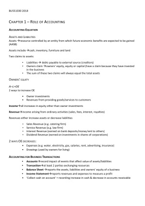 FULL NOTES 2018 BUSS1030 Accounting, Business and Society