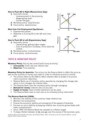 ECON1000 notes that cover both lecture and textbook content for the unit. Unit was completed at Curtin University. All content for the semester exam is included. Diagrams for all theories included. Topics Covered: 5. Behavioural Economics and Asymmetric Information. 6. Introduction to Macroeconomics: GDP, Unemployment and Inflation. 7. Aggregate Demand and Aggregate Supply. 8. Monetary Policy. 9. Fiscal Policy. 10. Exchange Rates.
