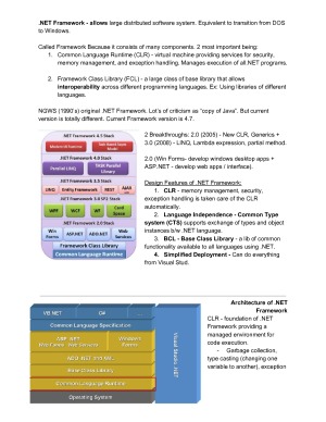 .NET Framework - What is Microsoft .NET  History  Features  .NET Architecture  Common Language Runtime  Base Class Library  Data Processing  User Interface  Common Language Infrastructure  Visual Studio.NET