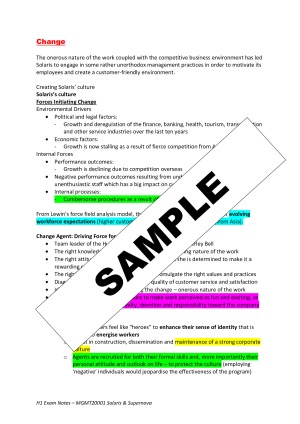 - Very useful for your Part B Exam Preparation for OB. - Linking theories and concepts from the OB topics of Change, Communication, and Strategy and Structure to the Solaris and SuperNova Case Study I completed MGMT20001 during 2018 so this is the most recent notes for this course. Everything is explained very clearly and can be easily understood. It is very neatly formatted with highlighted, underlined and bold text. The SAMPLE contains 7 pages, but the actual FULL set of notes contains 19 pages. Also, feel free to check out my other notes for OB and other subjects! Note that this set of notes is for the case Automakers only. I also have the following notes for OB available: - H1 OB Sanrizz Exam Notes for 2018 - Very comprehensive - H1 OB Enron Exam Notes for 2018 - Very comprehensive - H1 OB Automakers Exam Notes for 2018 - Very comprehensive All the best with OB!