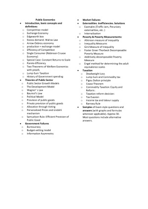 Condensed notes of all the theorems and theories from the Public Finance (ECC3810), Public Sector Economics (ECM3810) or Public Economics (ECC5810) units, including sample answers in the exam-style format, which can be used to create flashcards. See sample for a summary of topics and concepts included.