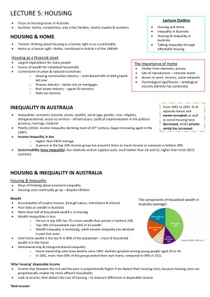 Highly detailed and descriptive lecture notes for all lectures Weeks 1 -12 for Global Inequalities in the Anthropocene. Topics include: inequality and the 1%, the anthropocene, education, housing, health, work, migration, land struggles, protest and youth, and global inequalities. Include diagrams, definitions and case studies for further explanation of the material. Well set-out and easy to understand.