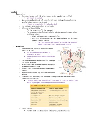 Included in these notes is the material from week 7 to 13 that is going into the Final Exam. It includes material from lectures and readings for a better understanding. Content: - Antioxidants and free radicals - Fat soluble vitamins - Water soluble vitamins - Water balance - Major and minor minerals - Nutrition issues in the lifecycle Format: A4