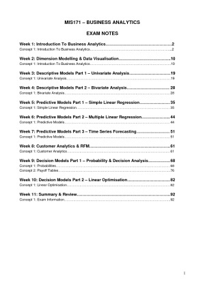 Included are full Trimester 1, 2018 MIS171 topics. With practice questions, and detailed analysis of each area. Very detailed and aesthetically pleasing notes, that are clearly defined and concise.