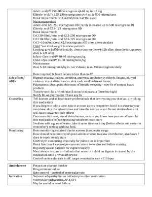 Scored 98% on the oral exam using these notes alone. Notes contain all information to do well on the oral exam. Was also used to help with drug knowledge Medications Included in the notes are those highlighted in the category 1 PMF Anticoagulants (NOACS+WARFARIN+HEPARIN+ENOXAPARIN) ACEI/ARBS BB CCB STATINS NITRATES Notes are main important points gathered from MIMsOnline, Tutorial, Lecture Notes, APF, AMH, eTG, Australian CV guidelines Each drug information contains: indication MOA Precautions Dose (frequency, duration, special instructions) ADES (+what to do if patient experiences it)--common and minor Counselling points (main ones+interactions) Lifestyle advice Pregnancy and breastfeeding notes Renal impairment Dosing regimen + standards for age and weight as well