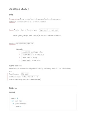 Comprehensive notes that cover all subject content from Object Oriented Programming to the JavaFX library. PS: I also tutored the subject Topics: - Basic programming plans - Design rules and notations - Debugging - Strings - Classes - Linked lists - Inheritance - How to build a GUI - The Java event model