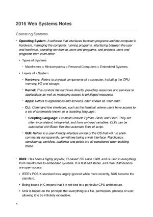 Comprehensive study notes that cover all lectures and includes information on Boolean algebra and number representation, computer IO, hardware, web technologies, and operating systems. Topics: - Operating Systems - The Web - Computer Science