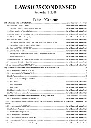 The polished version of my 150 pages of notes from the readings, these notes are logically designed by questions you'd ask in an exam, and helped me get a high distinction in my final exam. They were all I brought into my exam, and all you will need to bring too.