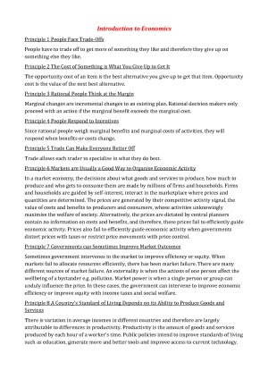 These are well-condensed but detailed notes on each topic to help prepare for final exams and complement your study for Economics for Business at University of Technology Sydney. The following notes contain diagrams and information to help clearly understand Economics for Business 23115 and includes notes from all lectures and tutorials. Specifically, the following topics are covered: 1) Introduction to Economics 2) Demand and Supply 3) Equilibrium and Elasticity 4) Government Policies 5) Efficiency of Markets and Cost of Taxation 6) Externalities 7) GDP and Price Indices 8) Unemployment and Inflation 9) Aggregate Supply and Demand Model 10) Monetary Policy and Fiscal Policy 11) Exchange Rates and Balance of Payments Goodluck and thank you for using those notes. Note: The sample notes contain 10% of the complete notes.