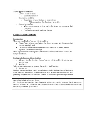 Professional Responsibility and Legal Ethics notes made by me using the "Professional Responsibility and Legal Ethics" textbook by Michael Brogan 1st edition. I received a HD in the Viva and also the final exam
