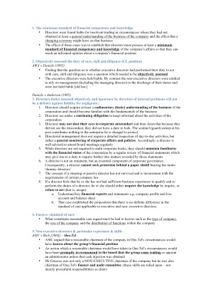 Week 8 – Company Organs & Subdivision of Power Week 9 – duties of directors (s180) Week 10 – Directors and Officers Duties (s181,2,3,4) Week 11 – Member’s remedies