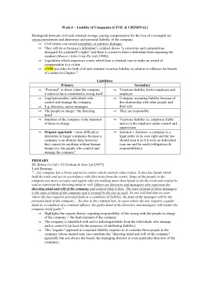 Week 1 – Overview of Australian Corporations Law Week 2 – The corporate personality Week 3 - Corporate Constitution Week 4 – Corporate Finance Week 5 – Corporate fundraising Week 6 – Liability of Companies Week 7 – Corporate contracting