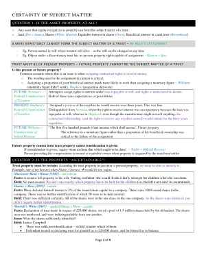 These are the 66 page notes I made for my final trusts exam. I'm quite a visual learner so they're quite colourful/use quite a few tables etc. which was helpful for me and I hope would help you too! They cover the following topics: - Introduction and Classification of Trusts - Certainty of intention - Certainty of Subject Matter - Certainty of Object - Charitable Trusts - Statutory Writing Formalities - Constituting the Trust - Quistclose Trusts - Duties and Powers of Trustees - Duty to act with reasonable prudence and investing - exercise of power or discretion - defences and limitations on liability - rights of trustees: ROI - Rights of trustees: right to approach the court/seek directions - rights of beneficiaries - remedies for breach of trust