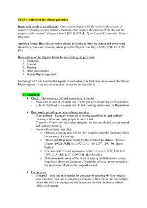 About the notes: - These notes outline the steps needed to answer part A of the criminal law exam. I created this checklist and used it in my exam and it was all I needed. I include the key legislative provisions as well as the theoretical underpinnings of each section. - The notes are organised by 'steps' to guide you through answering the hypo question. About me: - I am a third year law student with a high H1 average. - I have received several prizes for my academic achievements, including a scholarship covering the full tuition of my law degree, for placing as one of the top 2 students during my first year at law school. - I was a STS tutor. - I have been successful in securing numerous clerkships at top tier firms. - I have a graduate job lined-up at a top tier international firm. Topics covered in the notes: - Interpretation of offence provisions (language, context, purpose, ways to read criminal law) - Identification of physical and fault elements (results, conduct etc.) - Physical elements which are results - Policing choices - Prosecutorial choices - Regulatory choices - Sentencing