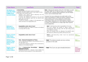 Topics 1-8 — Separated into facts, court decision and topic (helpful for summarising and understanding cases in simple and easy to follow manner, I personally used these in my exam) Topic 1: Introduction Topic 2: Commencing Proceedings, Service and Appearance Topic 3: Parties and Causes of action Topic 4: Pleadings Topic 5: Summary Disposal and Discontinuance of Litigation Topic 6: Discovery, Interrogatories, Preserving Subject Matter in Proceedings and Evidence Topic 7: Settlement Topic 8: Trials and Appeal