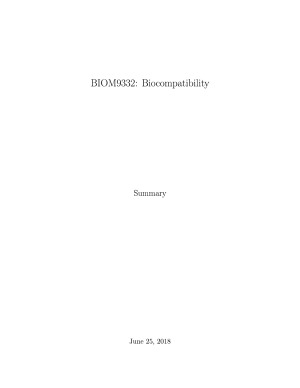 Lecture and class activity summary for BIOM9332: Biocompatibility. The notes cover all relevant topics and lectures: - Introduction to Biocompatibility - Biocompatibility and Biomaterials - Polymers - Metals and Ceramics - Cells, ECM and Cell-ECM Interactions - Biocompatibility Testing Guidelines - Tissue Engineering - Sterilisation - The Immune System - Host Response to Biomaterials - Blood Material Interactions - Additive Manufacturing The notes are great preparation for the quiz and final exam, with relevant diagrams, formula and definitions.