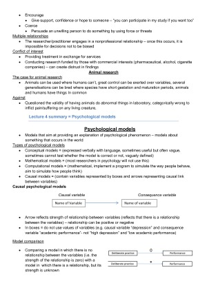 PSY1102 List of topics covered: Week 2: Data and Variables - Measurement Week 3: Ethics in Data Collection Week 4: Psychological Models Week 5: Research Designs Week 6/7: Validity in Ethics and Statistical Inference - Distributions and Sampling Week 8: Conceptual Frameworks and Research Designs Week 9: Hypothesis Testing, Statistical Decisions, P-Value, Types of error Week 10: Statistical Tests - T-tests Week 11: New Statistics Part 1 Week 12: New Statistics Part 2 Notes are made up of comprehensive summaries of lecture material, my own independent research and information from the prescribed textbook. The notes are written in my own simplified language and includes examples and diagrams.