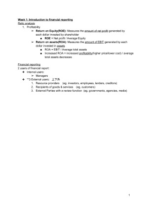 Includes detailed explanations that deliver all essence from lectures and textbook readings throughout the semester. Well-organised with headings and subheadings by weekly content. Topic list: Week 1 - Conceptual framework, external reporting Week 2- Double entry recording Week 3 - Accrual accounting, adjustments Week 4 - Inventories Week 5 - Receivables Week 6 - Non-current assets Week 7 - Liabilities Week 8 - Equities Week 9 - Share issues/Changes in equity Week 10 - Statement of cash flows Week 11 - Accounting for GST