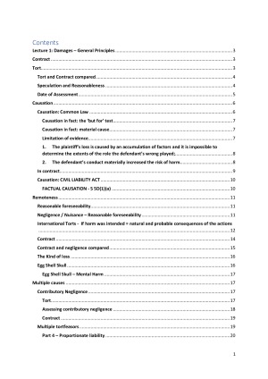 Notes covering all general and equitable remedies including: - General principles of damages (causation / remoteness etc) - Personal injury damages (economic and non economic loss) - Property Damages - Loss of chance - Equitable remedies - Restitution This document provides detail as to everything covered for general damages. I have another document that accompanies this that I created and utilised for the exam. The other document is a step by step flow chart to answer any kind of general damages questions.