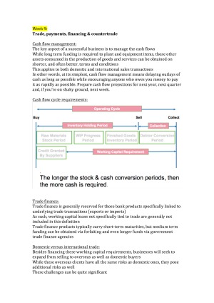 Detailed international banking and finance notes on every lecture and tutorial per week of semester, as well as additional tips. Includes a lot of example questions. This includes all 12 weeks of topics ranging from foreign exchange rates to future issues in international banking and finance. Notes include theory, formulas, diagrams and examples. Topics include intro to international banking, foreign exchange rates and their determinants, international monetary system, organisations and FX regimes, balance of payments and country risk analysis, foreign exchange markets, FX risk measurement and management, offshore debt financing, euro markets and IFC's, international equity markets and funds management, trade, payments systems, trade financing and countertrade, ethics, ESG lending and anti-money laundering, future issues in international banking and finance, and an overview of the units content.