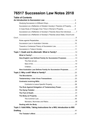 2018 Autumn Succession Law Notes. It covers: - All cases from the readings and lecture slides - All topics - notes are crafted from lecture + textbook - All scaffolds for the Will Drafting Take Home Exam (extremely useful! See sample notes) - Have a glossary of all succession terms used throughout the semester (see sample) - covers all relevant sections of the succession act You may find the scaffolds I have written to be very handy. It was a scaffold i created using the feedback I got from my take home exam and is well-crafted to get an easy HD for the assessment item. I received a mark of 82 for this subject.