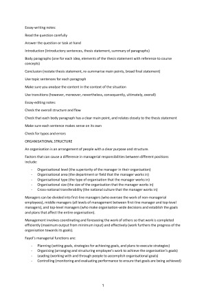 Notes covering the ENTIRE MGMT1001 course, including the final exam. Received a Distinction with a final mark of 80 for this course. Covers ALL course topics including: Introduction to Organisations and Management Foundations of Management Theory Attitudes, Perception and Personality Communication Teamwork Leadership Decision-Making Strategic Management Strategic Human Resources Management International Business Social Responsibility and Ethics