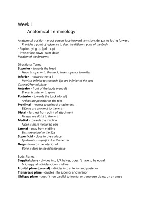 Covers weeks 1-8 - Anatomical Terminology - The Cell and its Organelles - Digestion - Nutrients and Macromolecules - Cellular Respiration - Membrane transport - Anatomy of the Cardiovascular System - Physiology of the Cardiovascular System - Anatomy of the Renal System - Physiology of the Renal System - Nervous System - Coordination of the Nervous System